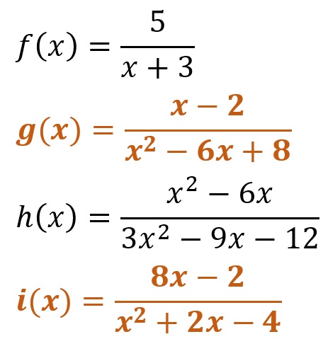 Para determinar el dominio de una función racional, es necesario igualar el denominador a cero y resolver la ecuación que queda. El resultado obtenido al resolver la ecuación se excluye del conjunto de los números R y de esa forma se obtiene el dominio de la función racional.